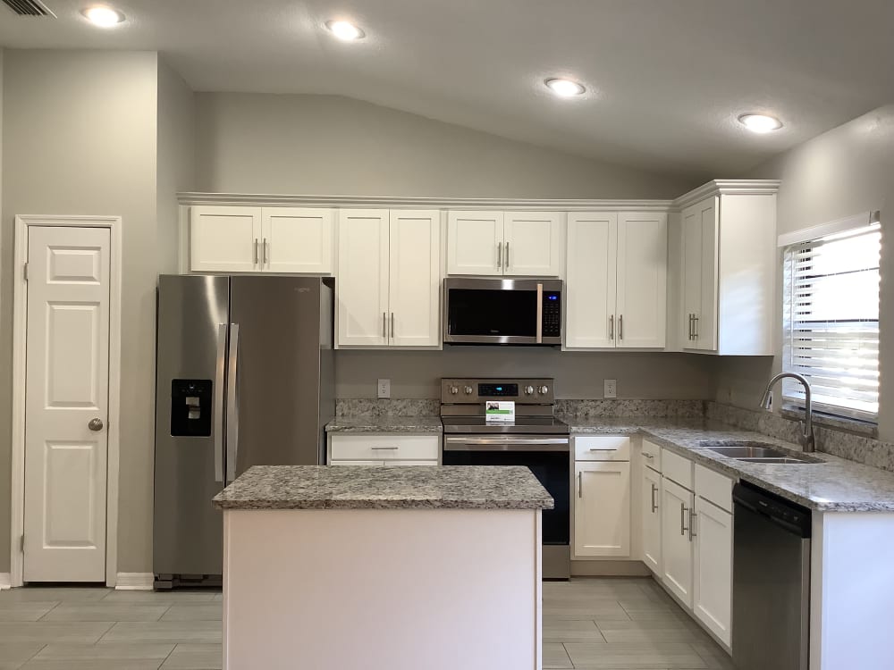 If you feel like you need this house in your life, click the heart and let's get you inside. This house is a blank slate. Turn it into your personal retreat where you can cancel plans with peace of mind. Cozy up by the living area with premium tile floors. Here you're free to do what makes you happy. You’ll love the beautiful kitchen complete with high-end cabinets, granite countertops, and stainless-steel appliances. The cooking space is roomy and set up to accommodate a cook who knows their way around a kitchen. Confidently let your furry friends loose in the fenced backyard. The well-kept yard leaves plenty of space to set up the amenities you need to complete your dream home. Apply online today!